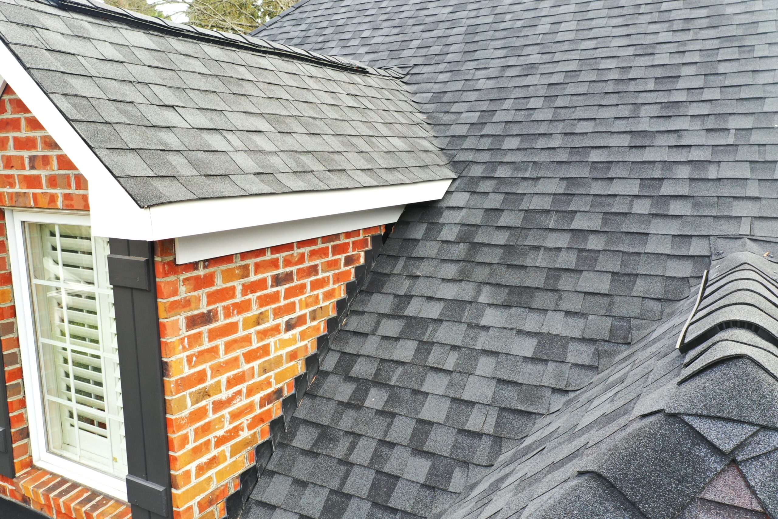 Where your roof meets a vertical wall — such as brick siding or dormers — special flashing is required to direct water safely away.